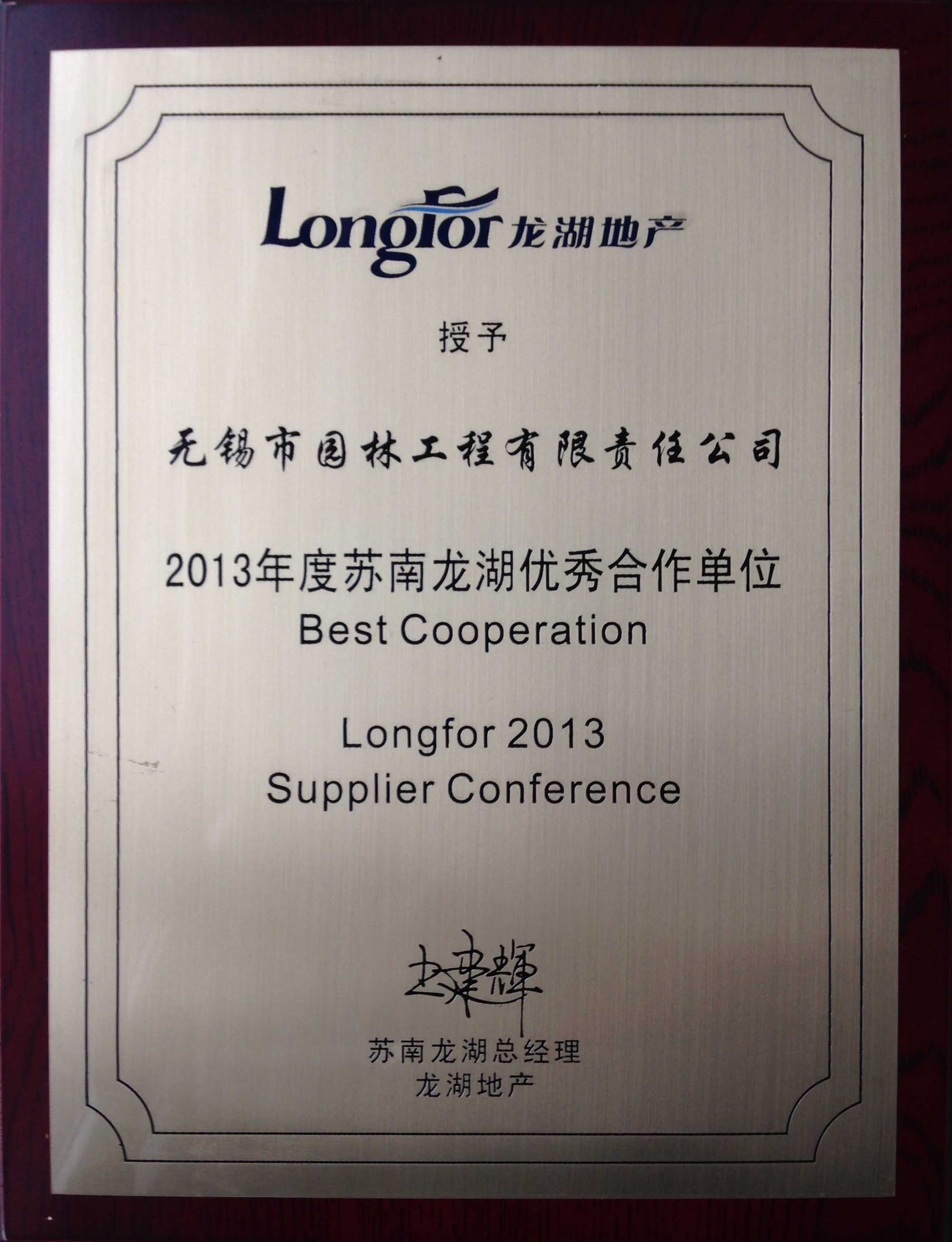 2013年度蘇南龍湖優(yōu)秀合作單位