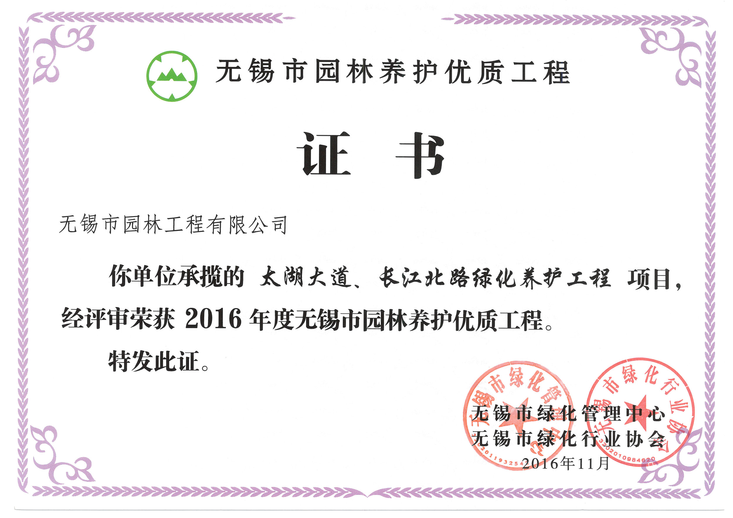 2016揚(yáng)子杯——無(wú)錫地鐵1號(hào)線沿線景觀綠化工程三標(biāo)