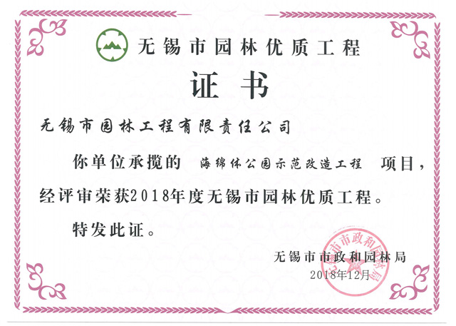 2018無(wú)錫市優(yōu)工程——海綿體公園